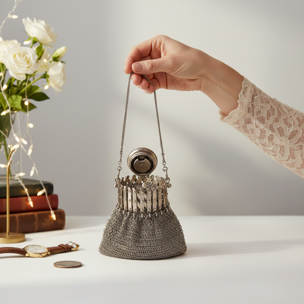 Its shining silver mesh and vintage appeal always turn heads—perfect for parties, dinners, or gifting to a fellow vintage lover.