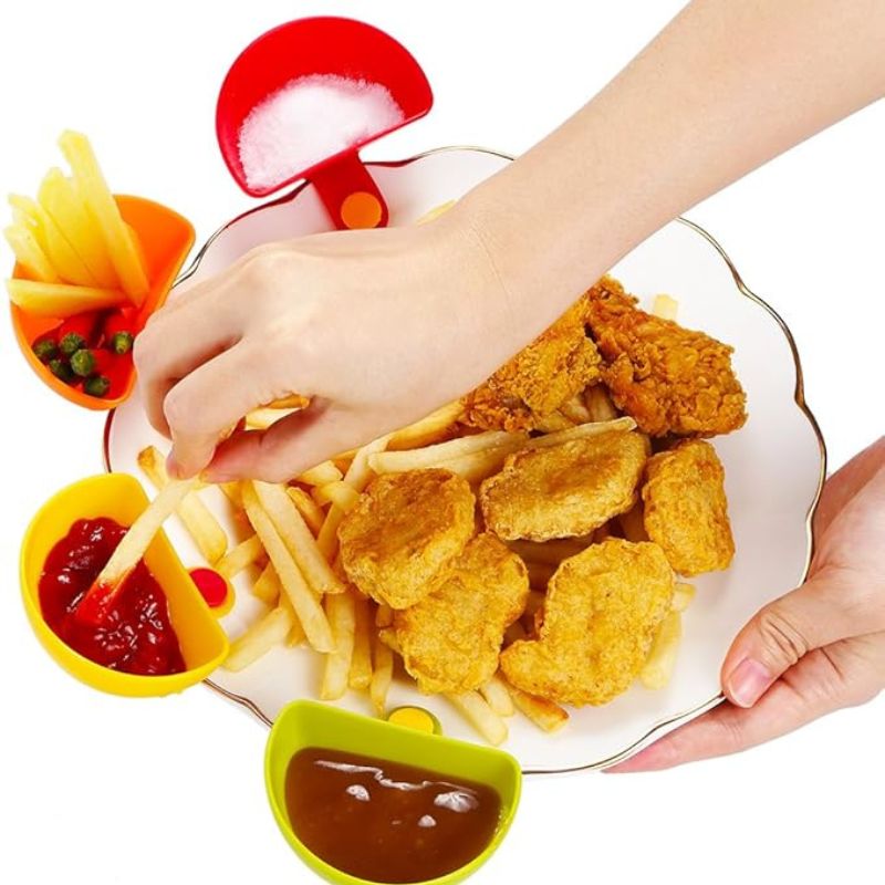 They clip firmly onto the edge of nearly any plate, keeping dips, sauces and snacks neat and separate.