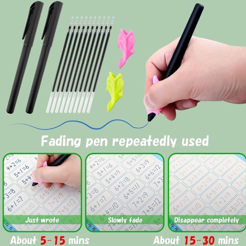 Reusable magic ink fades in 30 minutes, letting your child practice letters and numbers daily without waste or mess, getting ready for class with ease.